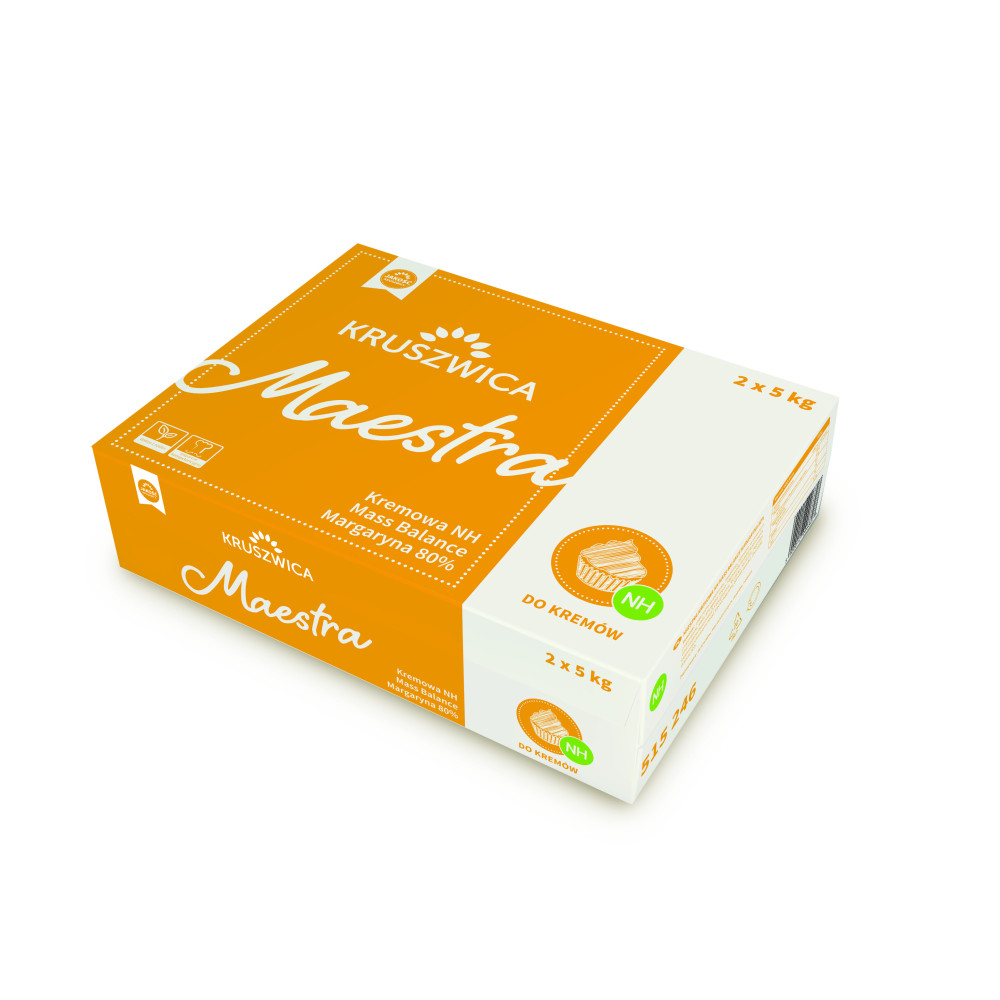Margaryna Maestra Kremowa NH MB to doskonały wybór dla wszystkich cukierników zainteresowanych przygotowaniem puszystych i stabilnych w swej konsystencji kremów, nadzień, deserów i mas cukierniczych.